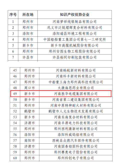 2022年12月28河南省知识产权局公布了“2022年度河南省知识产权强企备案名单公示”,我公司被认定为河南省知识产权优势企业,这是公司自2019年取得新乡市知识产权优势企业以后,在知识产权领域获得的又一项荣誉。